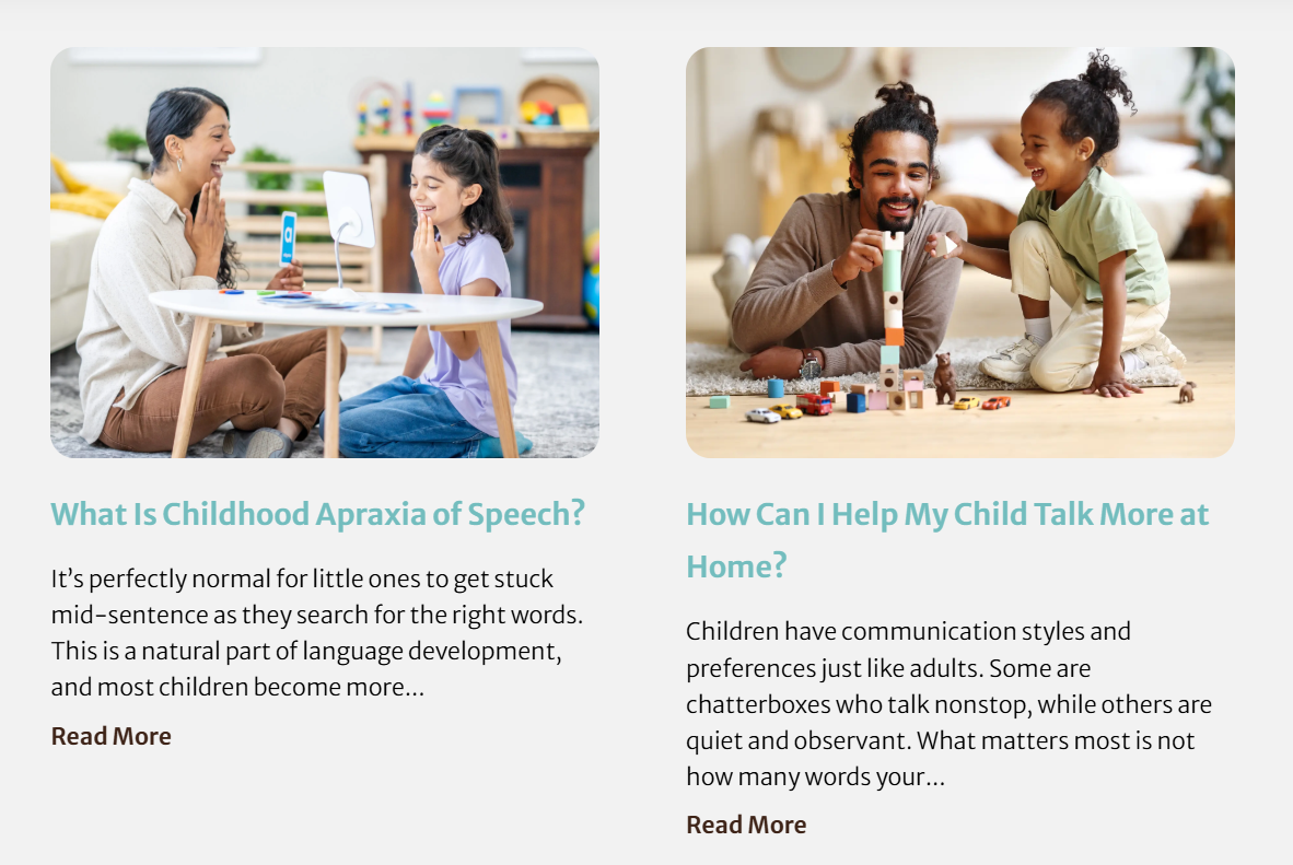 Post at least one or two blog articles per month and share them on your social media profiles to build trust and position your clinic as the place that understands parents and gives real, actionable help.