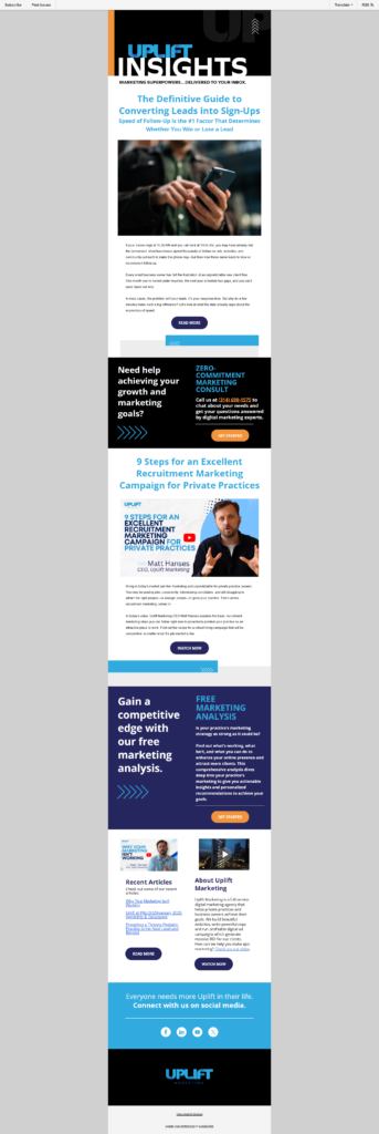 If you want to start content marketing the right way, but you don’t have the time to figure out what to do from scratch, Uplift Marketing can guide you through the process step by step.